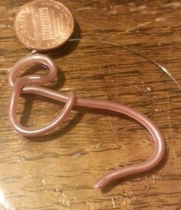 ▼美國網友曾在家裡發現這種德州細盲蛇(Leptotyphlops dulcis),牠的外觀神似蚯蚓,但其實是蛇類,不過並沒有什麼攻擊性喔!