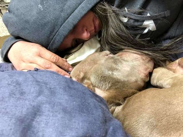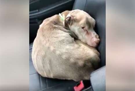 ▼​這大概是Watson第一次在愛牠的人懷裡入睡。第二天醒來後,牠看起來更加疲憊,不吃不喝,慢慢繞圈踱步。不久之後,這隻沒有享受過多少溫暖的狗狗就去世了。