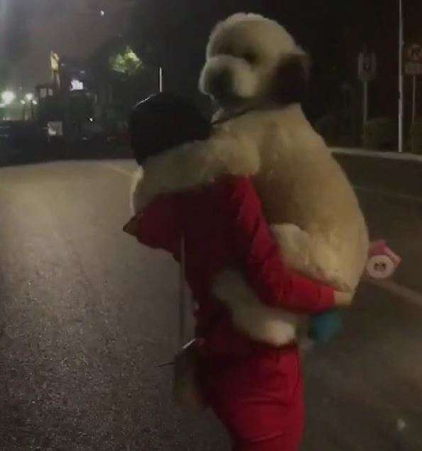 這麼大隻還是個寶寶! 大白汪散步到一半飛撲主人 狂撒嬌:「我要馬麻抱抱~」