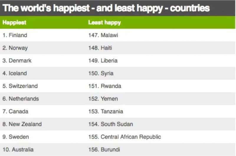 ▼這份報告對六個關鍵變量進行了排名,這些變量代表了會影響幸福的一些因素:收入,自由,信任,健康的預期壽命長度,社會支持和人情味。排列出了最快樂的十個國家以及最不快樂的十個國家。