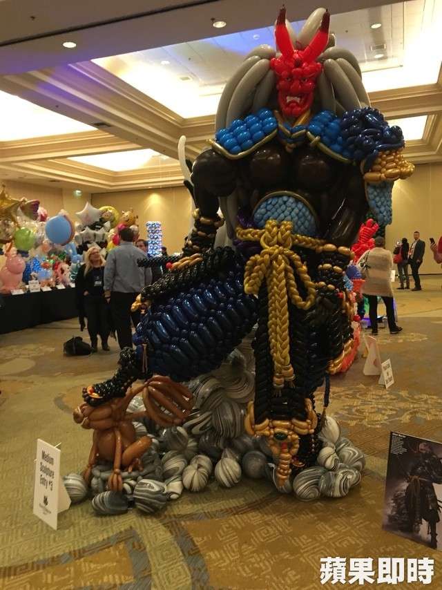 ▼何坤龍也與台灣團隊高文祥、李國溢、黃品諭、陳顗晴一起,以2萬條氣球完成了中型雕塑品「鬼武士」。