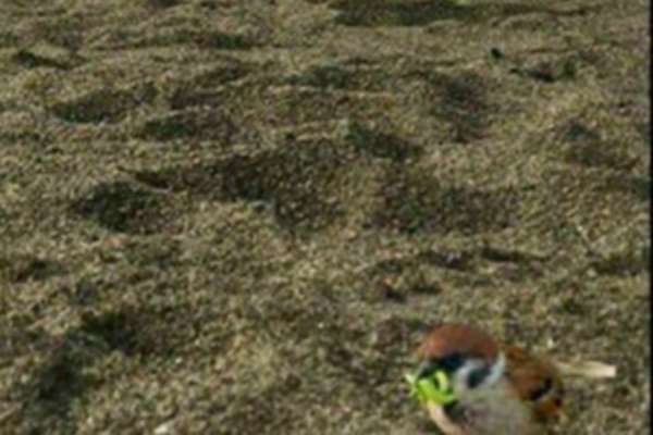 ▼照片的右下角還有一隻正在覓食的麻雀,讓整個畫面更加有趣。
