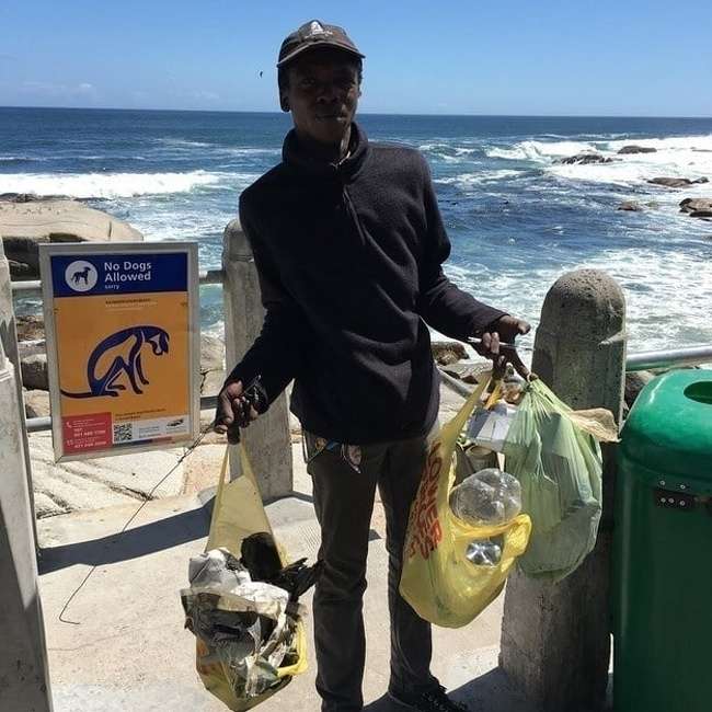 ▼這名無家可歸的街友每天都到海邊清理垃圾,而且不求回報。