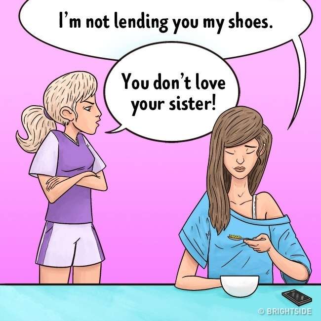 「我不會把我的鞋子借給你穿。」「你根本就不關心你的親妹妹!」