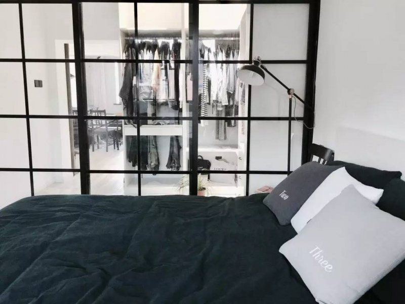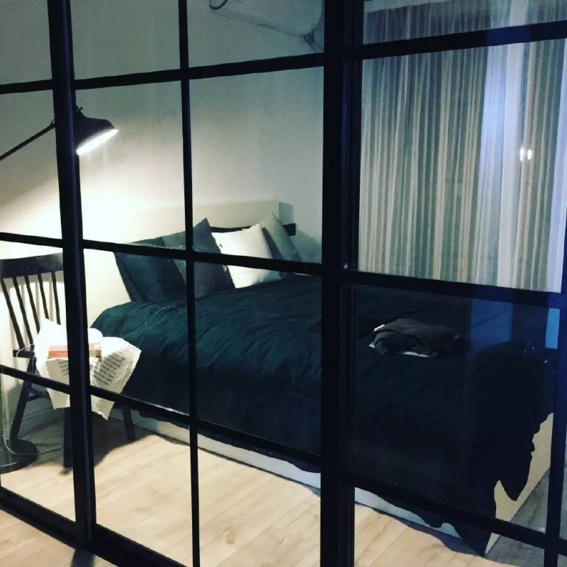 ▼他們使用頂高玻璃,將臥室隔成了3個空間,看起來很寬敞。