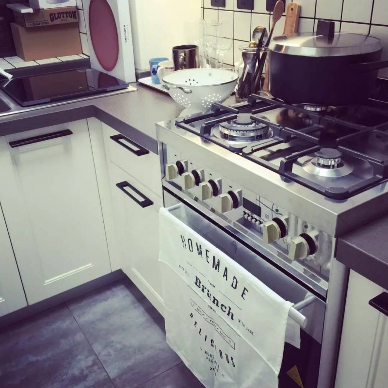 ▼他們選了白色的整體櫥櫃,功能齊全,外觀美麗,價格適中。裝潢時可以在別的地方省錢,廚房和浴室絕對不行,Allen和Jacob也明白這一點,所以選擇的爐台、烤箱都是專業級別的。