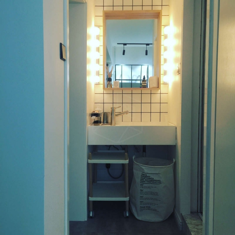 ▼有了浴缸,洗手台就沒地方擺放了,他們將洗手台獨立出來,放在浴室門外,並不佔地方。