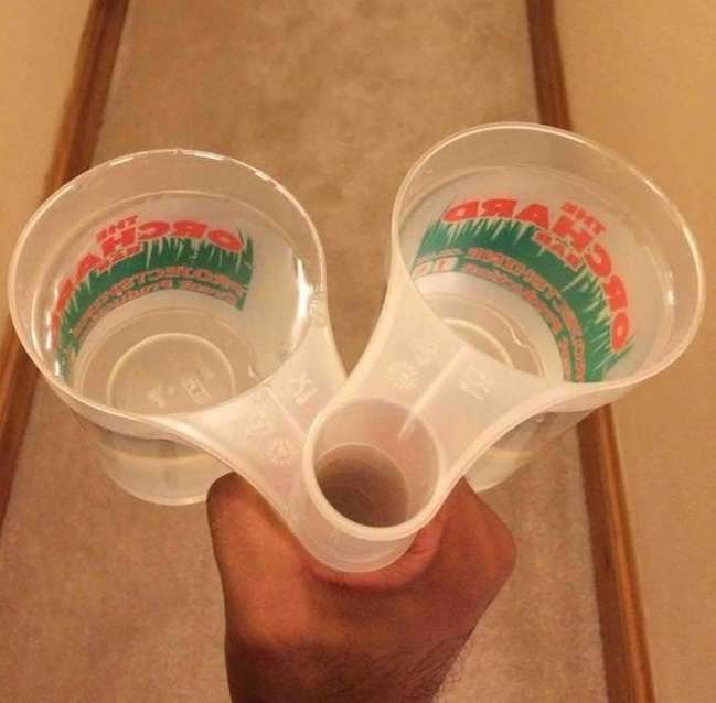 ▼水杯把手的設計很特別,可以一次拿好幾杯。