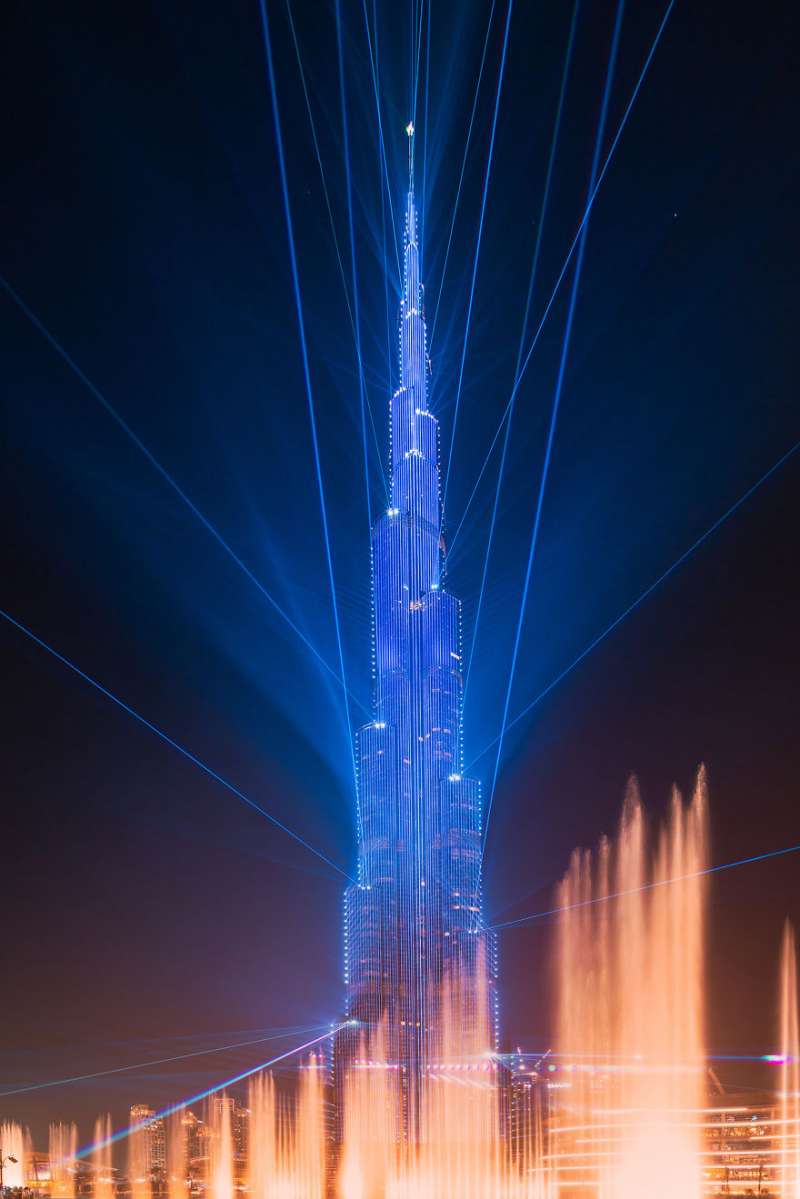 ▼哈里發塔的雷射秀曾登上金氏世界紀錄,跨年期間,也是許多遊客會來朝聖的地點。