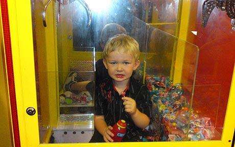▼小朋友被困在糖果機器裡:2歲男孩Cohen Stone在一間義大利餐廳玩時,爬進糖果販賣機大吃特吃。媽媽表示:「我們在參加生日派對,我一直在和他玩,就是幫忙擺了一下食物,將視線從他身上移開2分鐘,沒想到一回頭就看到了那一幕。」