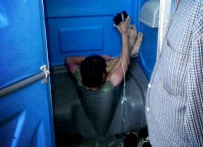 ▼卡在馬桶中:2013年5月,南非開普敦一處建築工地的廁所中傳出驚慌的求救聲。原來一名男子卡在馬桶裡,只有手臂、腿、頭伸出來。消防員花了40分鐘,才用垃圾袋把他拉出來。他帶著iPhone,看起來不像街友,很可能是癮君子。