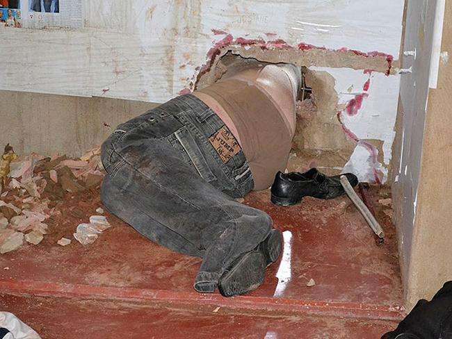 ▼罪犯被困在牆壁裡:一名巴西罪犯用沐浴的管子挖開牆壁越獄,他的同夥比較小隻,從洞中逃跑,他卻被卡住了。他痛苦的呻吟引來獄警,獄警沒辦法,只能向警消求助,把他救了出來。