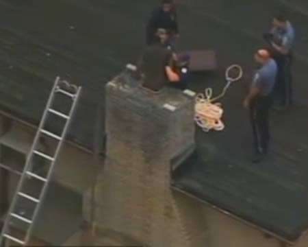 ▼小偷被困煙囪:一名盜賊想從煙囪爬進別人家偷竊,沒想到被卡住。鄰居聽到他的呼救聲報警。他被困12小時後終於被救了出來,屋主非常驚訝,她根本沒發現煙囪裡有人。