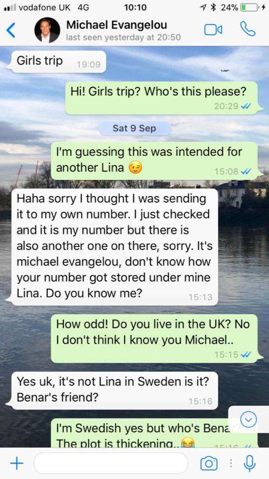 去年時,44歲汽車銷售員Michael Evangelou在WhatsApp給自己傳了一則簡訊,提醒自己去看一部期待已久的電影。沒想到他一時手滑,傳到了37歲化妝師Linda Dahlbeck的手機上。