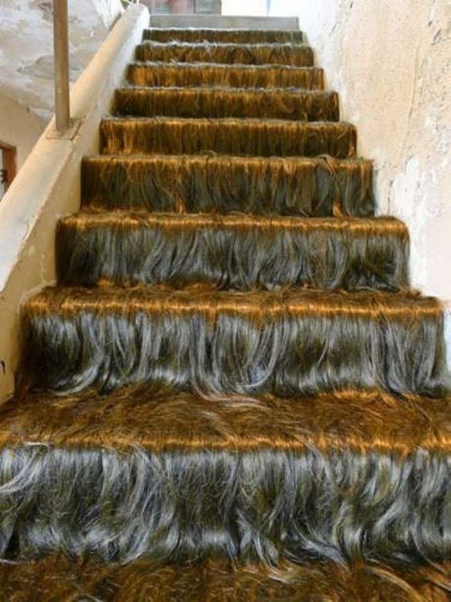 ▼鋪滿頭髮的樓梯你敢踏上去嗎?