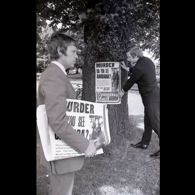 ▼兩名檢察官在芭芭拉遇害的公園張貼海報尋找芭芭拉。