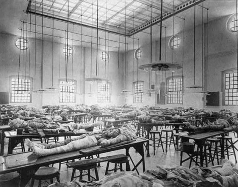 ▼​1902年,賓夕法尼亞州一間醫學院的解剖室內,放滿了等待被解剖的屍體。