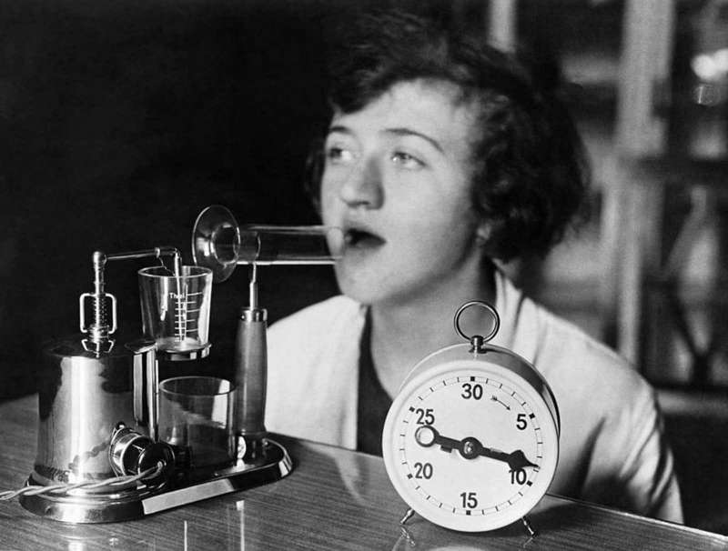▼​1929年,這名女子正在使用電子呼吸儀器治療感冒。