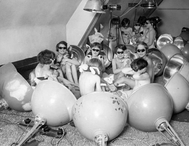 ▼​1929年,德國小朋友們聚在一起照太陽燈。