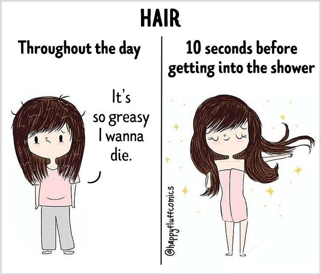洗澡前十秒鐘:「好像很乾淨,不用洗頭好了!」