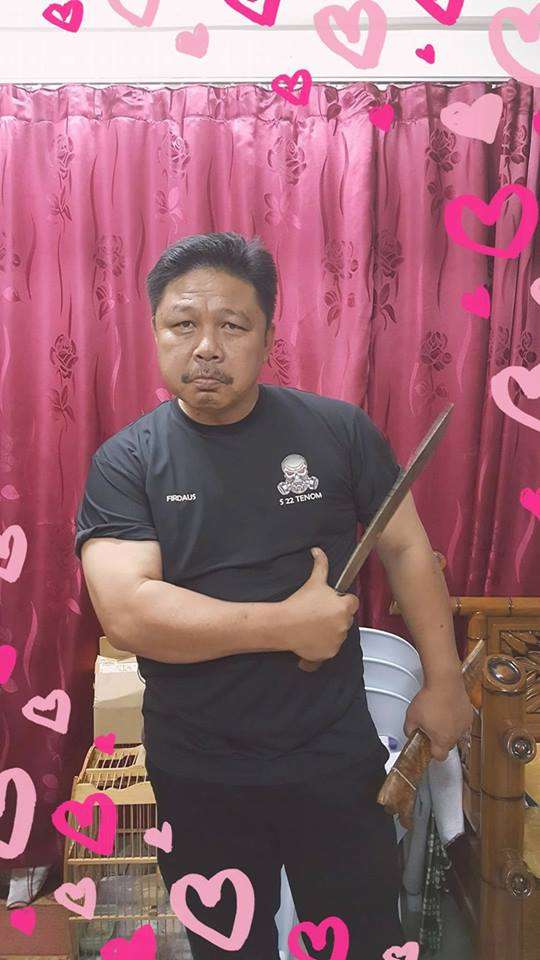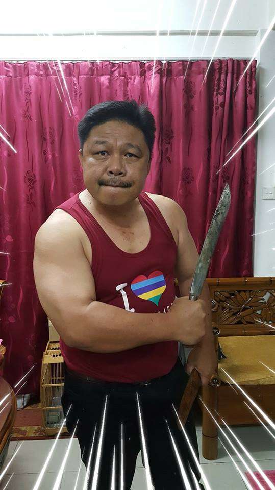 ▼警官父親在臉書上分享了自己的3組照片,一組是黑T持刀表情嚴肅,一組手持匕首穿背心露出肌肉的兇狠照,還有一張是父親兩人帶著墨鏡滿臉笑容。