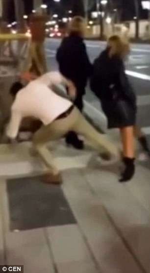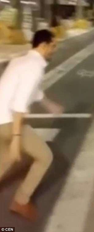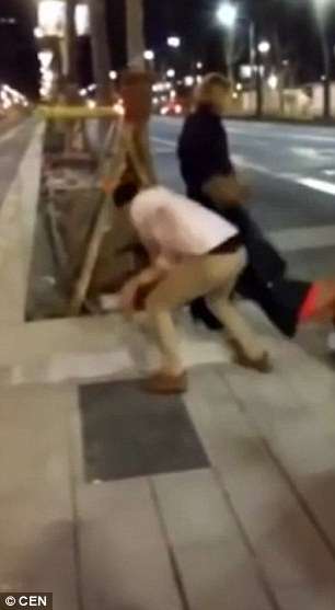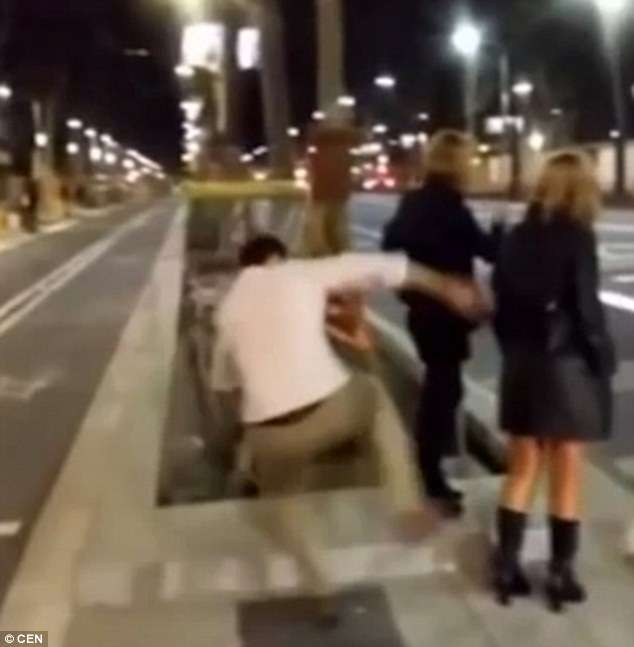 ▼2015年Mario Garcia Montealegre在西班牙巴塞隆納惡作劇,從背後一腳踹倒了路邊的無辜女性。