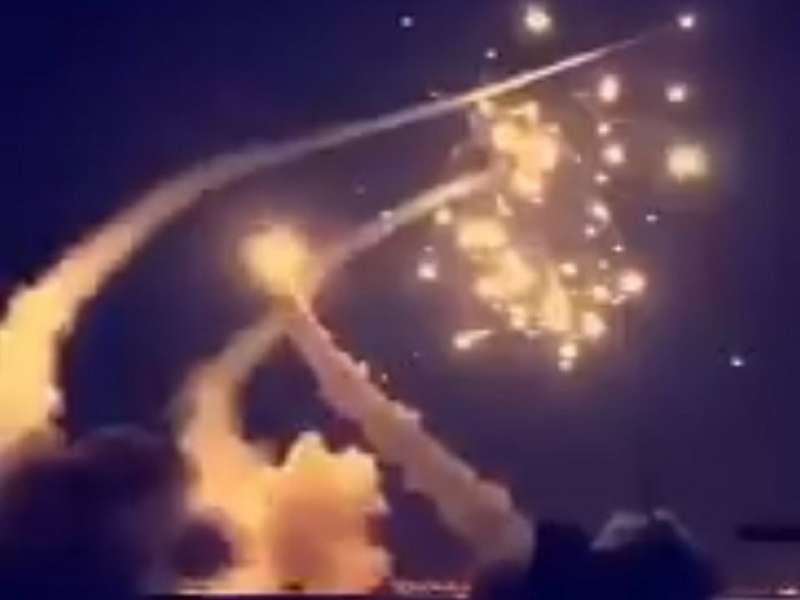 #BREAKING: Footage sent to Al Arabiya shows moment anti-defense missiles from #Saudi Patriot batteries fired to intercept apparent #Houthi missile over #Riyadh.