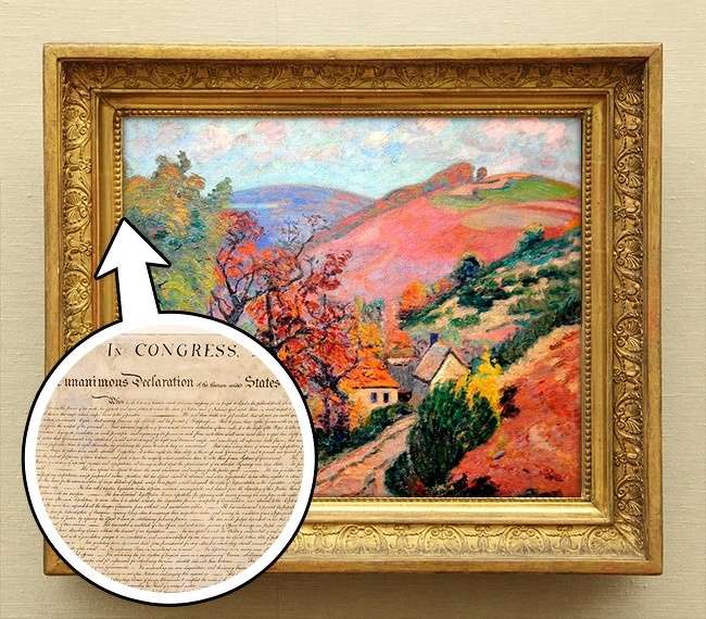 美國一名男子花了4美元買了一幅油畫,當他試圖要換畫框時,卻發現油畫後面有一些文字資料,似乎是1776年獨立宣言的25份正式副本之一。而這份文件後來以240萬美元的價格拍賣。這樣的故事不只一起,有名男子花了2.48美元買了一份宣言,經過很長一段時間之後他決定把它展示給專家。這似乎也是184年前製作的副本之一。後來,這份宣言以125000美元的價格成交。