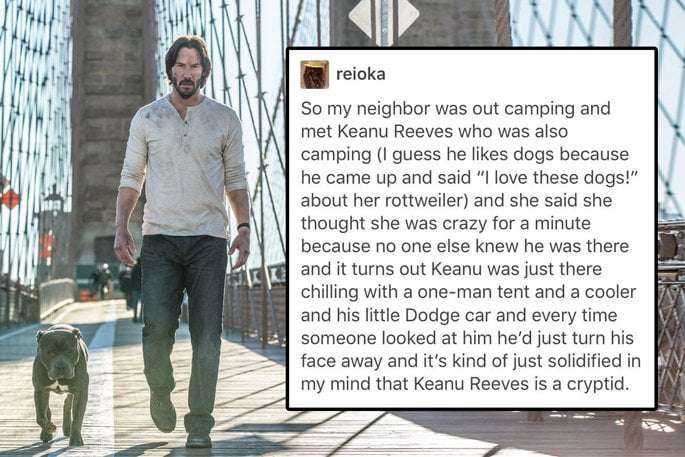 ▼「我鄰居去露營時遇到了基努李維。她說看到基努李維的一刻,自己差點興奮到瘋掉,因為之前沒人知道他在那裡。他身邊只有一個單人帳篷、一個冰桶、一台車,每當有人看他,他就把臉轉過去。在我的心裡,基努李維的神秘形象根深蒂固。」