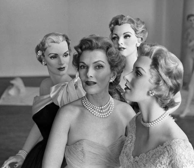 ▼13. 「我奶奶是知名演員安妮塔寇拜(Anita Colby)。1954年,她與那些以她為形象的人體模特一起合影。」
