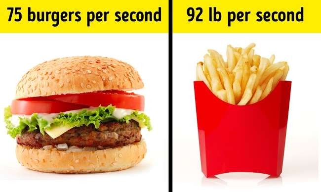 ▼麥當勞每秒賣出75個漢堡:麥當勞有一個專門的網站,能看到賣出了多少產品。