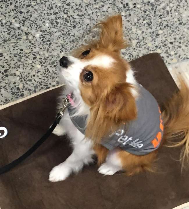 ▼這個機場養了一隻「療癒犬」,讓大家在等待飛機時可以跟牠玩!