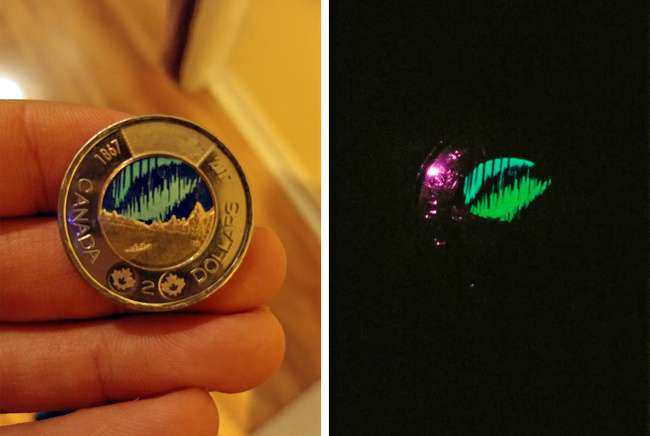 ▼加拿大的2元硬幣上,在黑暗中能夠變成極光的樣子!