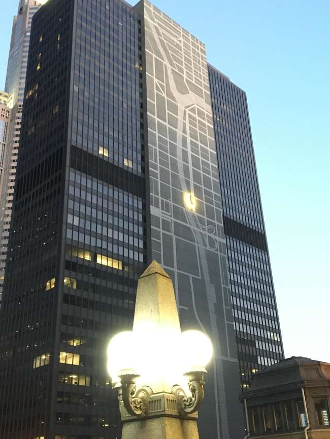▼芝加哥這棟大廈將自己位於地圖上的位置畫在了外牆上。