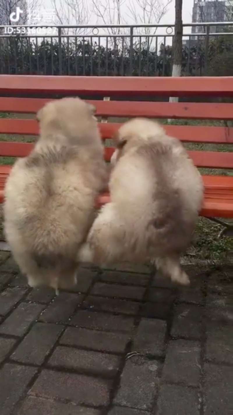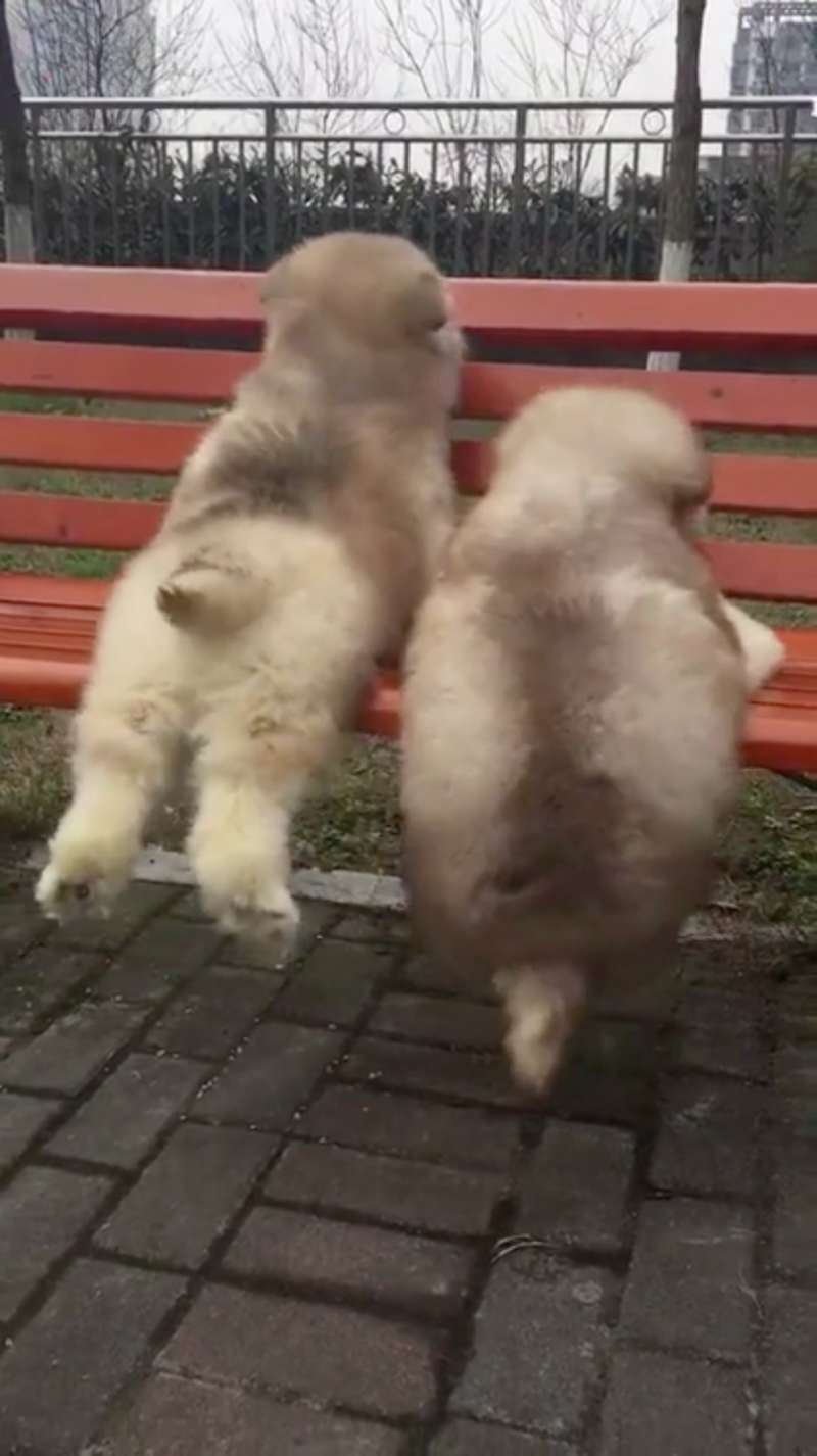 萌萌小傢伙拼命地想要爬上公園裡的長椅,後腿懸空兩個可愛小屁屁晃啊晃的,可愛模樣一秒就融化大家的心!