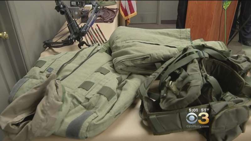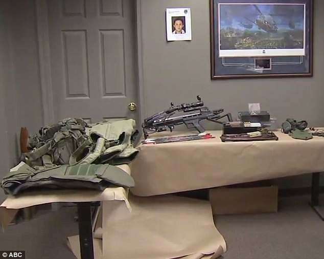 ▼孫安佐被逮捕後,稱之前只是開玩笑,沒想要恐攻。但現在正是美國校園槍擊頻傳的敏感時機,警方不敢懈怠,還是搜查了他的房間。他的住處藏有一件軍用防彈背心、加裝望遠鏡及燈光的強力十字弓以及弓箭、29發9公厘子彈、一個軍用滑雪面罩、槍枝專用隔音耳罩,和一種名為「garrote」的鐵環絞首裝置。