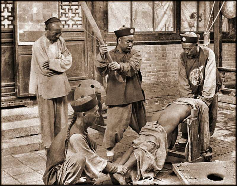 ▼接受鞭笞的罪犯。