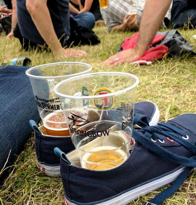 ▼草地上放置飲料的方法。