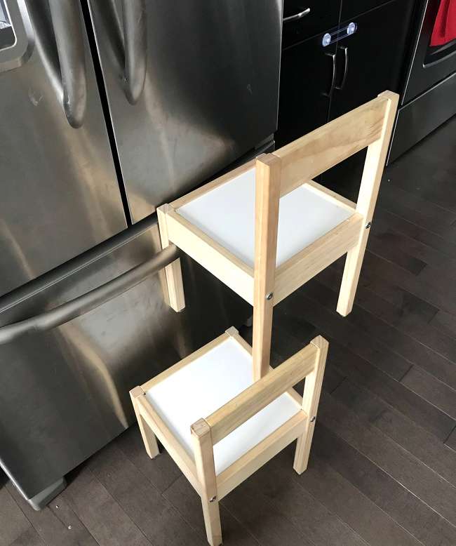 ▼3歲的小孩為了拿到冰箱內的糖果而DIY的階梯。
