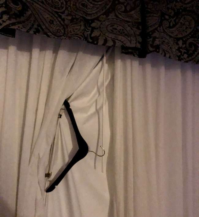 ▼飯店窗簾會透光的話,用晾衣架將它們夾緊。