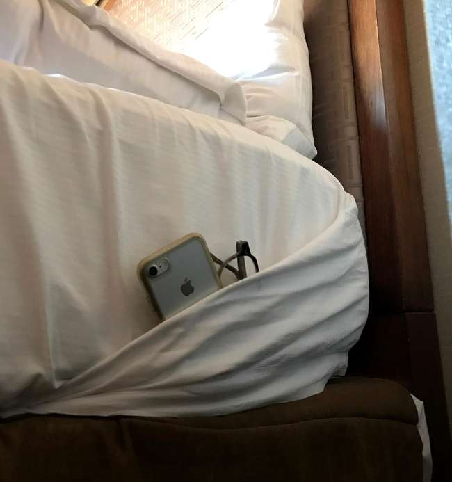 ▼飯店床邊沒有櫃子的時候。