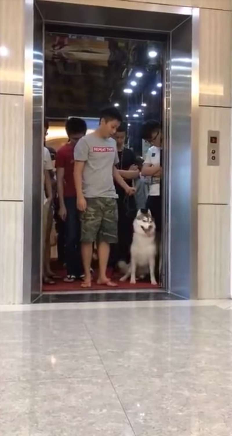 電梯超重嗶嗶! 機智哈士奇把主人騙到門外 自己坐進電梯:先走囉~