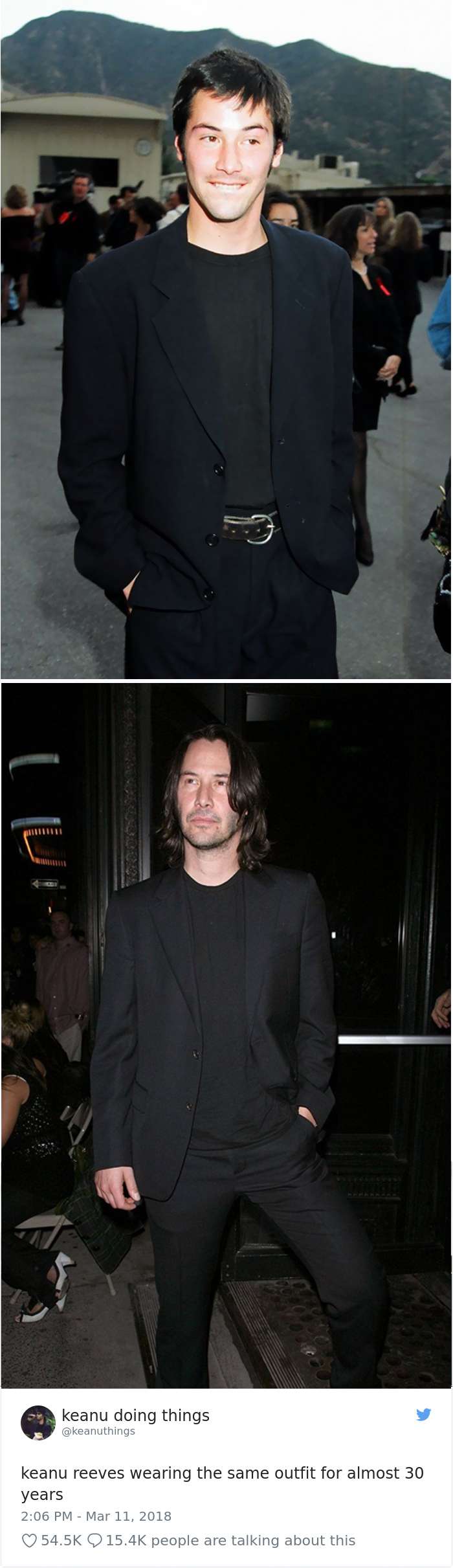 ▼基努李維這一套打扮維持了快30年。