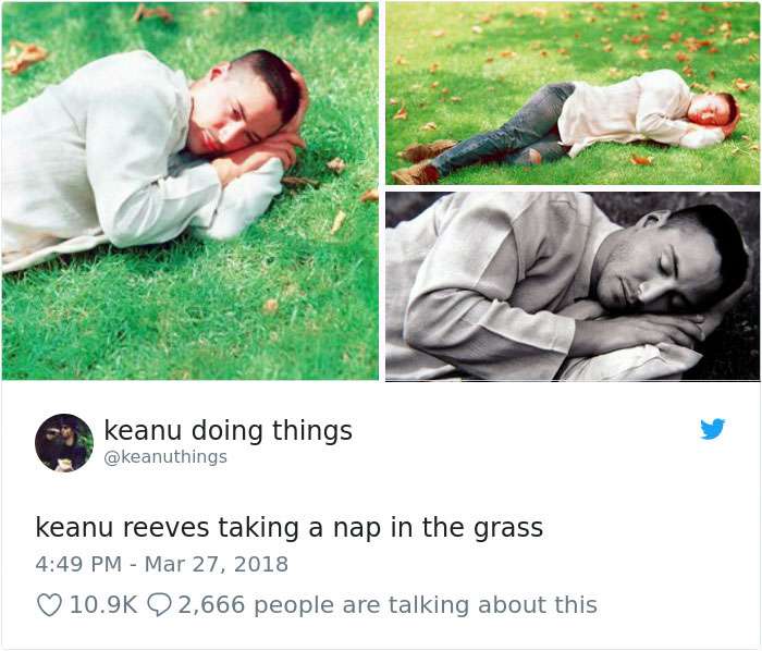 2018年04月01日基努李維(Keanu Reeves)是許多人心目中的男神,他的一舉一動也經常受到媒體的關注。有網友將他平常的舉動,配上廢到令人噴笑的旁白,上傳到「keanu doing things」的推特上,一起來看看網友到底多麼有創意和幽默感吧: