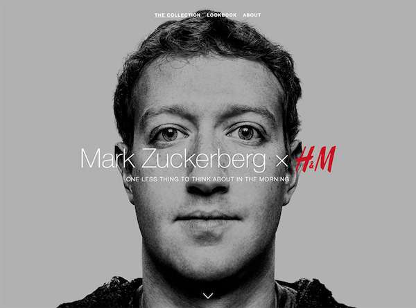 臉書創辦人馬克祖克柏向來以T恤配牛仔褲現身,而這樣的他竟然和H&M做起了聯名活動?他們為這個煞有其事的聯名活動架設了一個專屬網站,讓人看著看著都快以為是真的了!