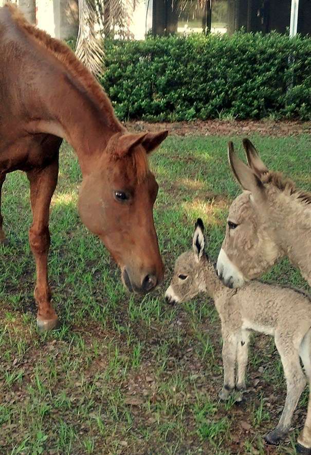 ▼驢子媽媽把小寶寶介紹給馬認識。
