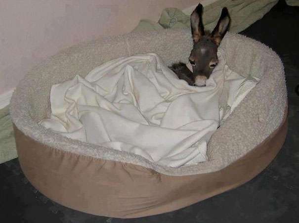 ▼在狗窩裡熟睡的小驢子。