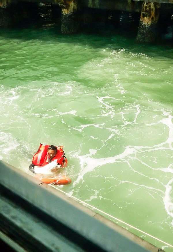 ▼當時警方接獲通報,得知尖沙嘴有一隻狐狸犬落水,載浮載沉地游泳。