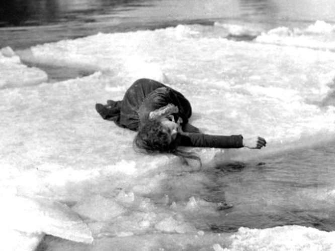 ▼螢幕中的莉蓮·吉許柔弱、我見猶憐,現實中的她卻很堅強。為了拍出好電影,她願意付出一切。她在暴風雪中,衣著單薄趴在浮冰上,差點被激流沖走。那次她差點被凍死,格里菲斯非常擔心,還為她買了高額保險。為了演繹重病瀕死的鏡頭,她絕食、絕水三天,還用棉花吸乾唾液,讓自己憔悴不堪。拍攝時她真的暈了過去,導演發現她停止呼吸,還以為她真的死了。
