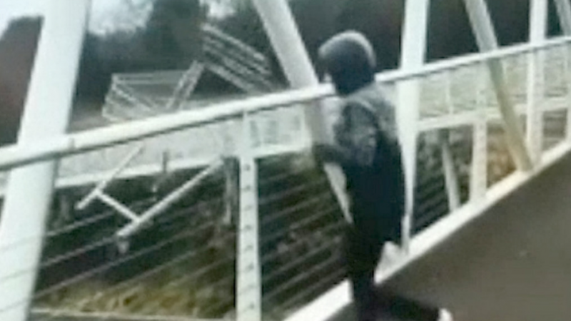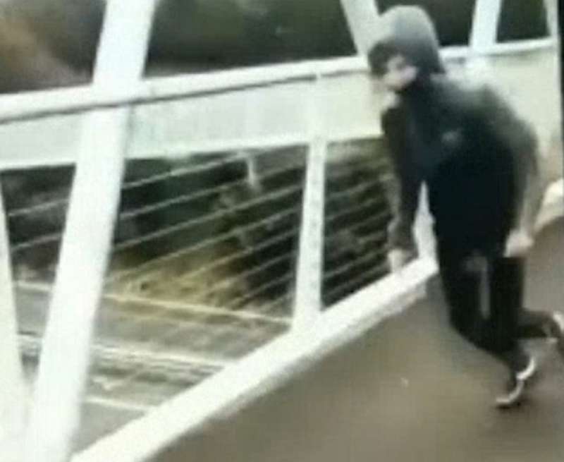 ▼這起事件發生在英國德文郡的埃克塞特市,監視器拍到一名少年推了一輛超市的手推車到天橋中央,接著將手推車從天橋拋到下方的公路上,還往下看了一眼才逃離現場。